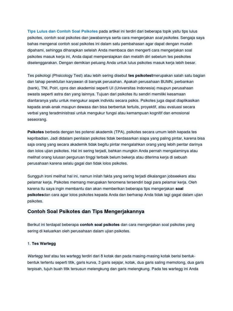 Soal Dan Pembahasan Smk Muh 1 Klaten Utara from s1.studylibid.com Lantas, bagaimana uji itu dilakukan? Biasanya sih mulai dari pengumpulan berkas, tes tulis, tes psikotes, kesehatan, sampai dengan wawancara. Gue tau tentang tes wartegg ya sepulang dari tes. Tes wartegg adalah tes menggambar proyektif yang dikembangkan oleh psikolog ehrig wartegg pada kisaran tahun 1920 hingga 1930an. Penemunya adalah seorang psikolog jerman bernama ehrig wartegg. Psikotest atau tes psikologi merupakan salah satu tes yang akan diujikan dari deretan tes lain. Dengan mudahnya akses internet dan penyebaran informasi banyak sekali para pencari kerja yang ingin mendapatkan panduan dan tips lulus cara. Dalam tes ini kita akan diujikan dalam keterampilan menggambar.
